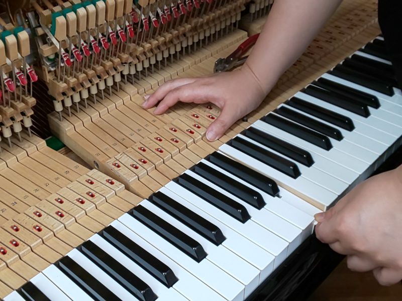 鍵盤が下がったまま戻ってこない、飛び上がったまま下がらない、一部分だけタッチが重い…といったトラブルは、天然素材を部品に多く使っているピアノにはつきものです。